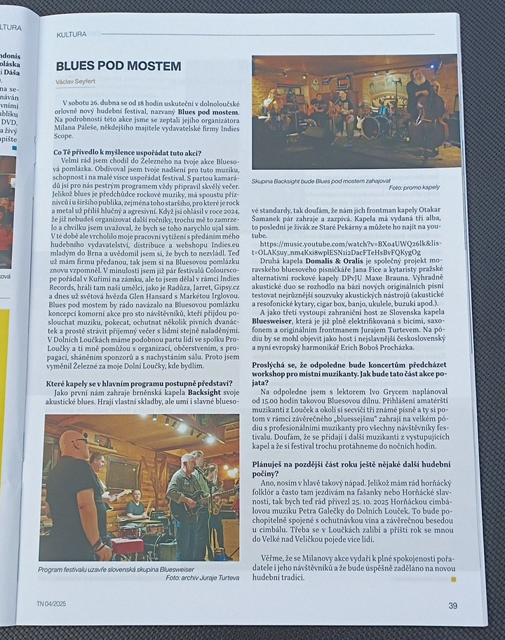 Akce BLUES POD MOSTEM se nezadržitelně blíží a v Tišnovských novinách si toho všimli taky! Vyšel tam skvělý článek o Milanovi Pálešovi, hlavním organizátorovi a srdcaři, bez kterého by tahle hudební událost vůbec nevznikla. 💪🎶